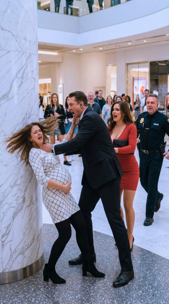 I never thought a shopping mall could turn into a courtroom. “Move,” my husband hissed, his fingers crushing my wrist. I tried to steady my belly. “Please—our baby—” I whispered. Then crack—his palm split my cheek in front of everyone. “Stop embarrassing me,” he spat, nodding at his mistress like she owned me. A security guard stepped in, calm, eyes burning. “Sir,” he said softly, “try that again.” I recognized that voice… and my blood went cold.
