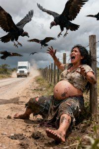 Ella trataba de levantarse, pero el cuerpo no le obedecía. Estaba demasiado débil, agotada, embarazada y a punto de dar a luz. Apenas sí podía sostenerse. Cada movimiento parecía robarle el poco aliento que aún le quedaba. A su alrededor, los zopilotes no se alejaban, al contrario, parecían esperar. hambrientos, inmóviles, observando en silencio, como si supieran que era solo cuestión de tiempo.